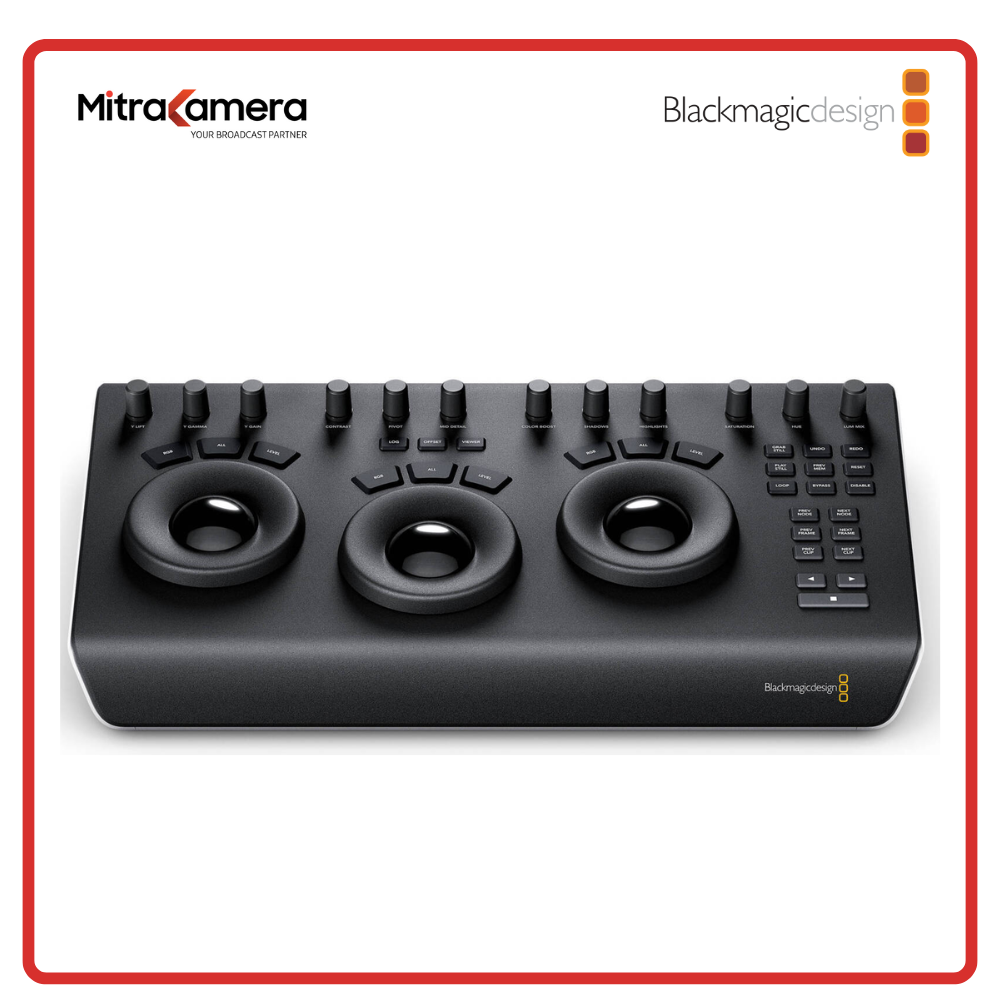 Designed to work in tandem with your Apple iPad Pro, the DaVinci Resolve Micro Color Panel from Blackmagic Design provides the same level of professional color control as other panels but with a beginner-friendly interface. The panel provides more color and a faster workflow to DaVinci Resolve Studio software than working just with a keyboard and mouse. It consists of three high-resolution trackballs, 12 control knobs, and several buttons to adjust parameters like Y lift, Y gamma, Y gain, and contrast.