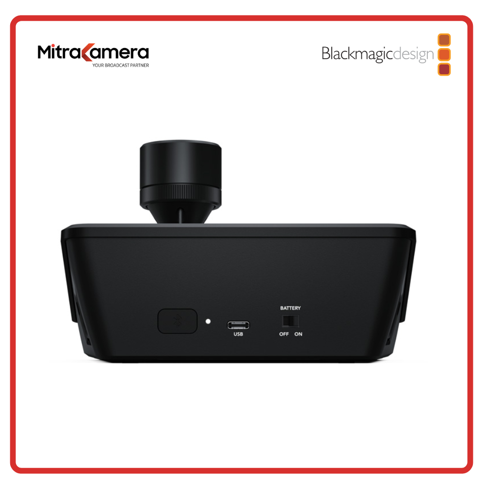 Control up to eight URSA Mini Pro, URSA Broadcast, or Blackmagic Studio cameras with the ATEM Micro Camera Panel from Blackmagic Design. This compact cousin of the ATEM Camera Control panel features eight assignable NKK camera select buttons, red/green on/off air button illumination, a 3-axis joystick, and multiple controls for iris control, preview, gain, filters, shutter, white balance, and more.