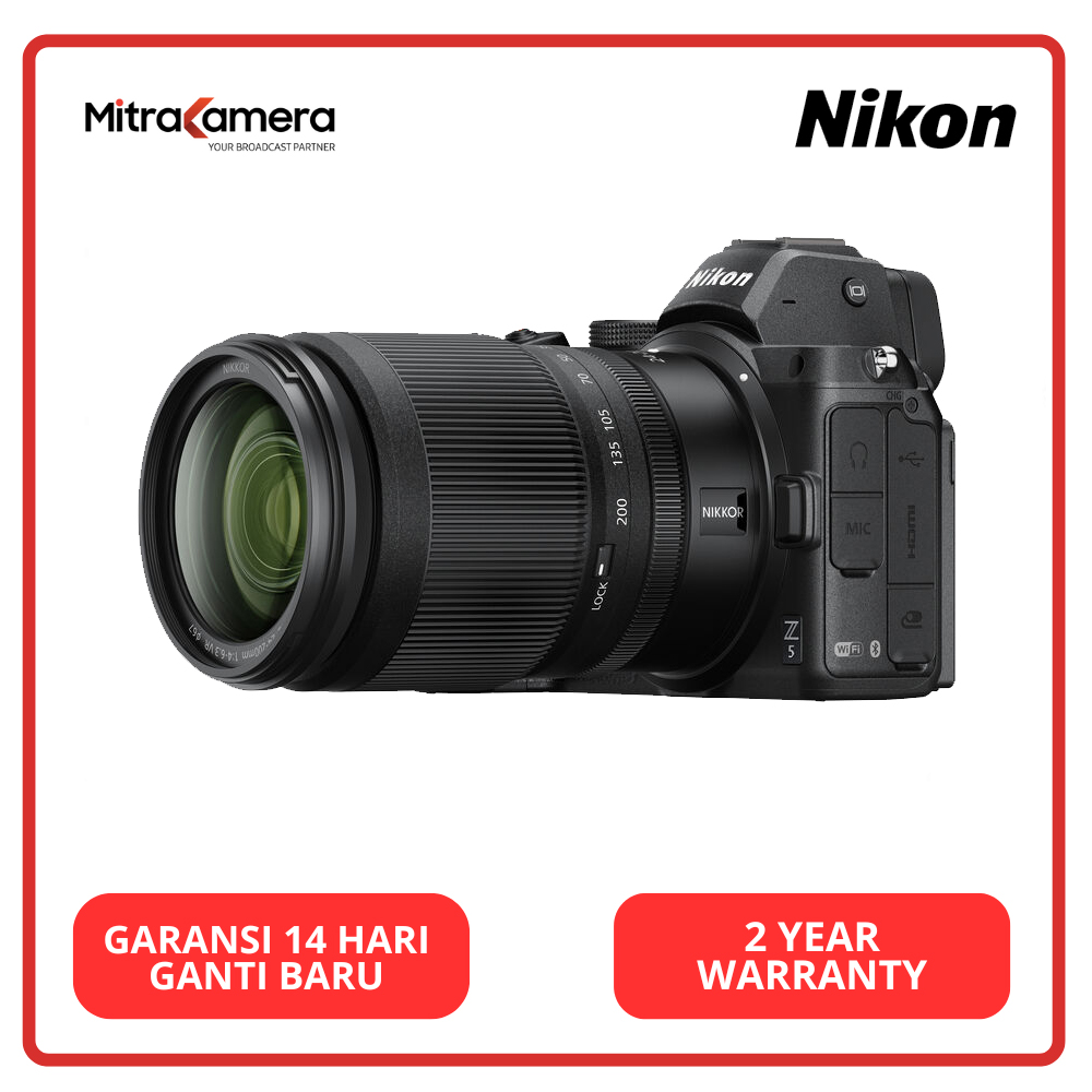 Nikon Z5 Mirrorless CameraHigh-Resolution Photo and VideoCompact and capable, the Nikon Z5is an FX-format mirrorless camera with a well-rounded feature-set to suit both photo and video needs. Its 24.3MP CMOS sensor and EXPEED 6 processor afford wide sensitivity to ISO 51200, quick shooting at 4.5 fps, and UHD 4K video at 30 fps. Complementing the sensor and processor is a sleek but versatile physical design that includes a magnesium alloy chassis with a weather-sealed construction to suit working in inclement weather. A high-resolution 3.6m-dot OLED electronic viewfinder allows for high-res eye-level viewing while a rear 3.2" 1.04m-dot tilting touchscreen LCD accommodates working from high and low angles. Additionally, for easy sharing, built-in Wi-Fi and Bluetooth work in conjunction with the Nikon SnapBridge app for wirelessly transferring photos and videos and remotely controlling the camera from your mobile device.