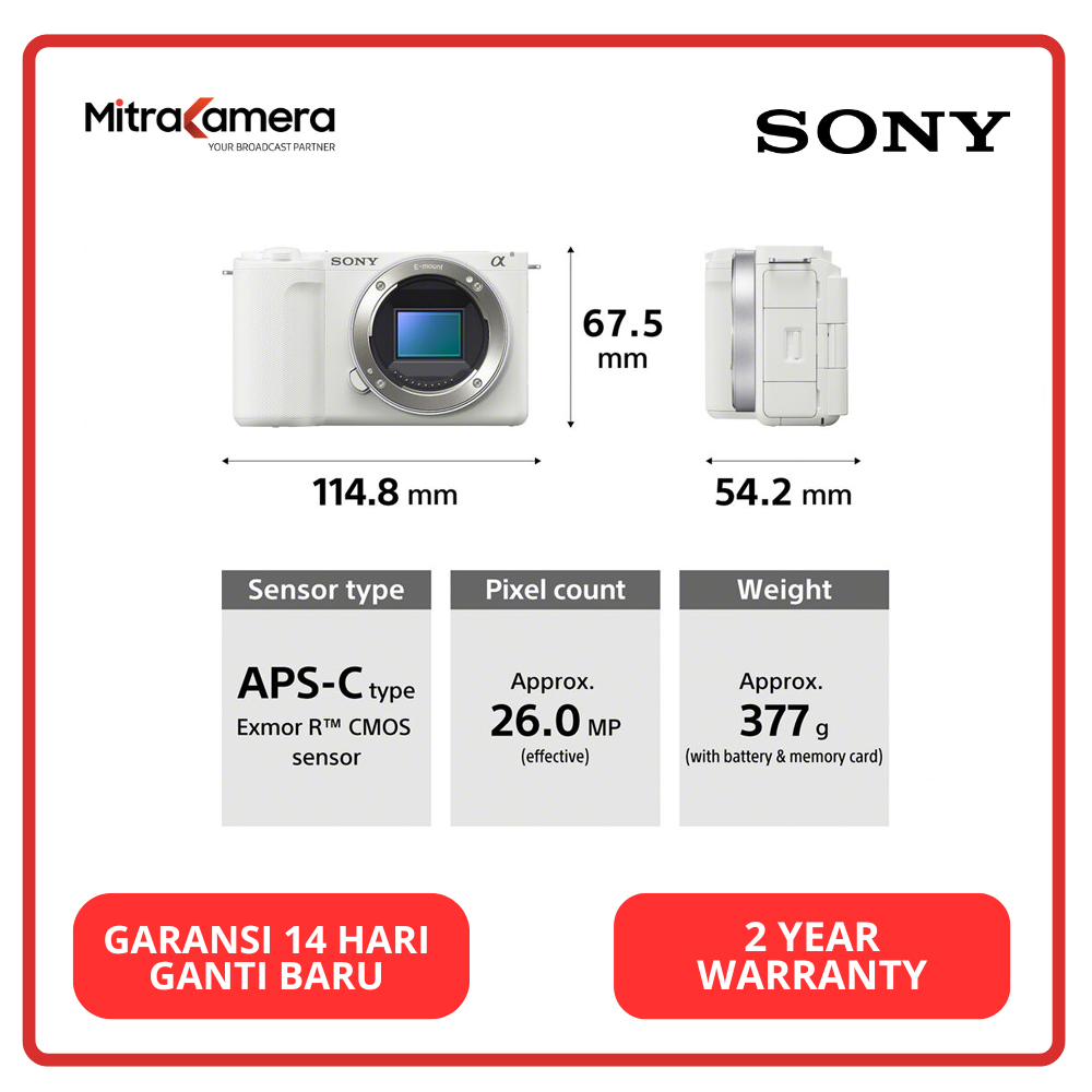 Body Design and ConnectivitySony E Lens MountThe E mount supports all E-mount lenses, including full-frame FE lenses.Intuitive Touchscreen LCDThe side-opening, vari-angle display benefits working from high and low angles as well as a front-facing position for vlogging or other self-recording needs. It provides intuitive touchscreen shooting control, playback, and menu navigation.Versatile and Durable Design
