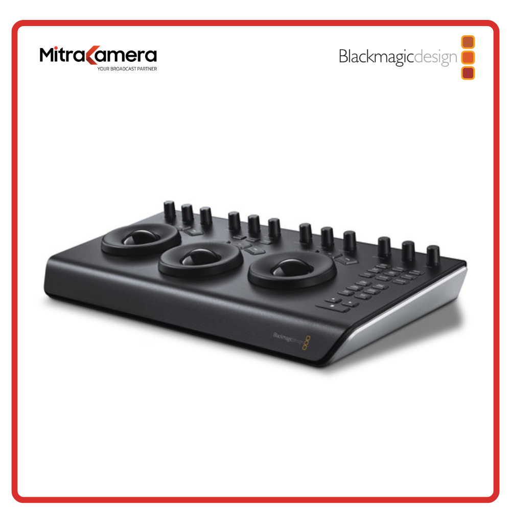 Designed to work in tandem with your Apple iPad Pro, the DaVinci Resolve Micro Color Panel from Blackmagic Design provides the same level of professional color control as other panels but with a beginner-friendly interface. The panel provides more color and a faster workflow to DaVinci Resolve Studio software than working just with a keyboard and mouse. It consists of three high-resolution trackballs, 12 control knobs, and several buttons to adjust parameters like Y lift, Y gamma, Y gain, and contrast.