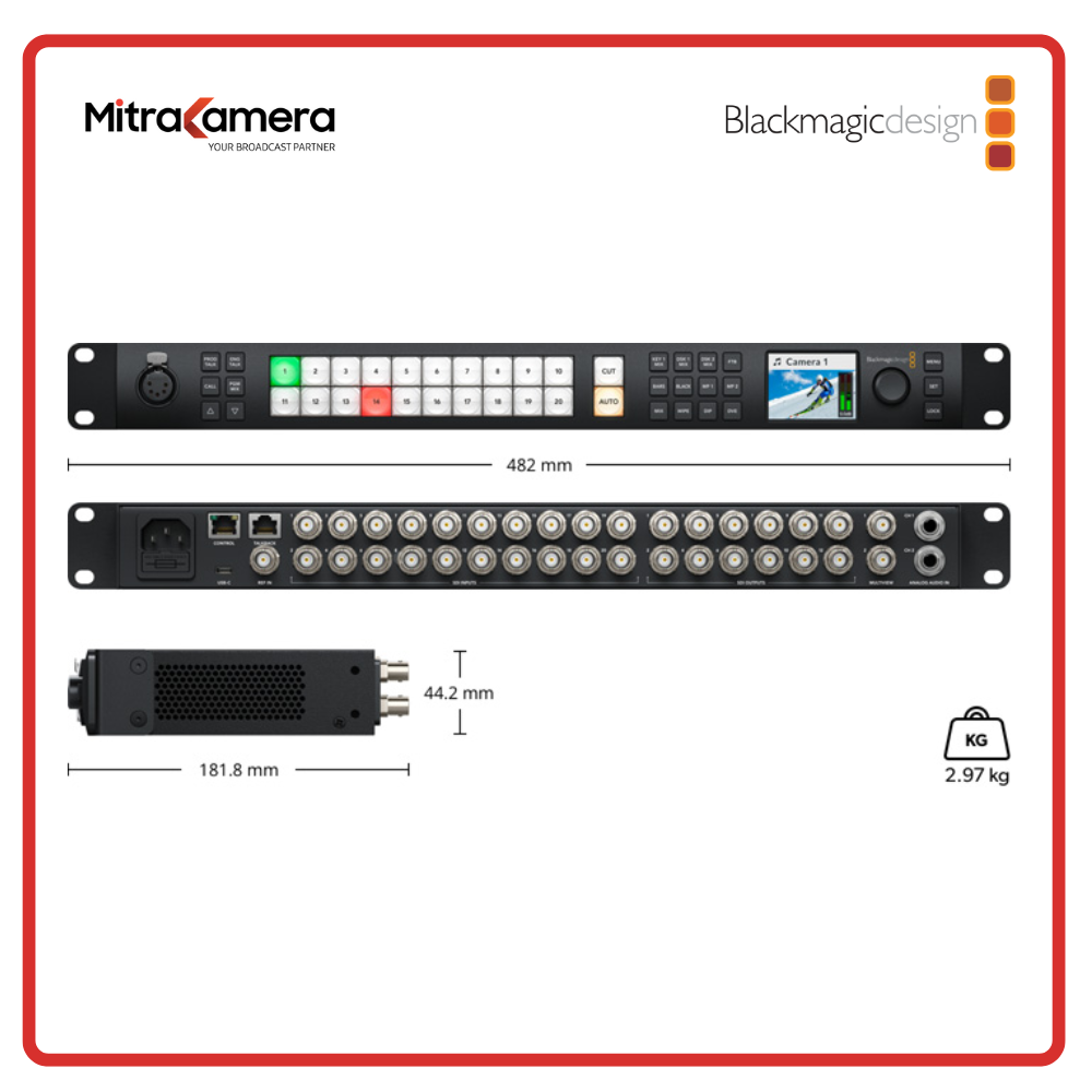 ATEM 2 M/E Constellation UHD 4K Live Production Switcher menambahkan kemampuan UHD 4K dan port 12G-SDI ke konstruksi switcher yang familiar dari pendahulunya. Dirancang untuk peralihan UHD 4K acara langsung yang bertenaga, unit ini dilengkapi 20 input 12G-SDI individual yang mendukung sinyal 12G/3G/HD-SDI dan mengirimkannya ke 12 output 12G-SDI atau output webcam USB-C. Selain itu, pengalih memiliki keluaran multiview hingga 16 jendela yang dapat dirutekan yang dapat menampilkan masukan, video berkunci, grafik, dan gambar diam dari kumpulan media, serta keluaran program. Setiap input terhubung ke mixer audio Fairlight internal yang mendukung hingga 28 saluran audio.