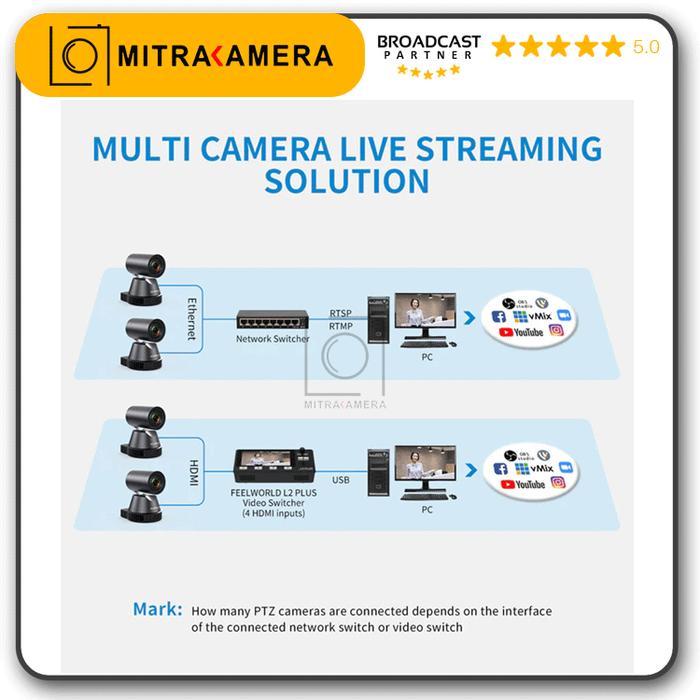 4K12X menggunakan teknologi AI canggih untuk melacak subjek secara otomatis, menjaga subjek tetap fokus saat bergerak di sekitar ruangan. Ia juga menawarkan kontrol pan/tilt yang halus dan presisi, memungkinkan Anda menangkap berbagai sudut dan sudut pandang dengan mudah.Antarmuka Multi Keluaran4K12X dirancang dengan berbagai antarmuka output, termasuk HDMI dan streaming IP. Ini memberi Anda fleksibilitas lebih besar dalam cara Anda menggunakan kamera, baik saat Anda menyambungkannya ke monitor, perangkat perekam, atau platform streaming.