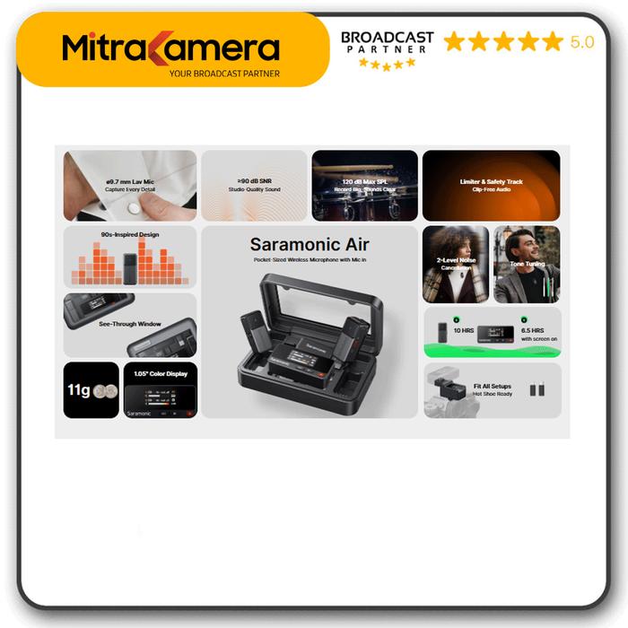 The Saramonic Air is a powerful, ultracompact wireless microphone system built for modern content creators. Designed for two-person shoots, this all-in-one solution delivers professional-quality audio in a mini clip-on form factor—perfect for interviews, vlogs, livestreams, journalism, podcasts, and more. With universal compatibility and included lavaliers, the Air is ready for any setup, from DSLRs and smartphones to tablets and computers.