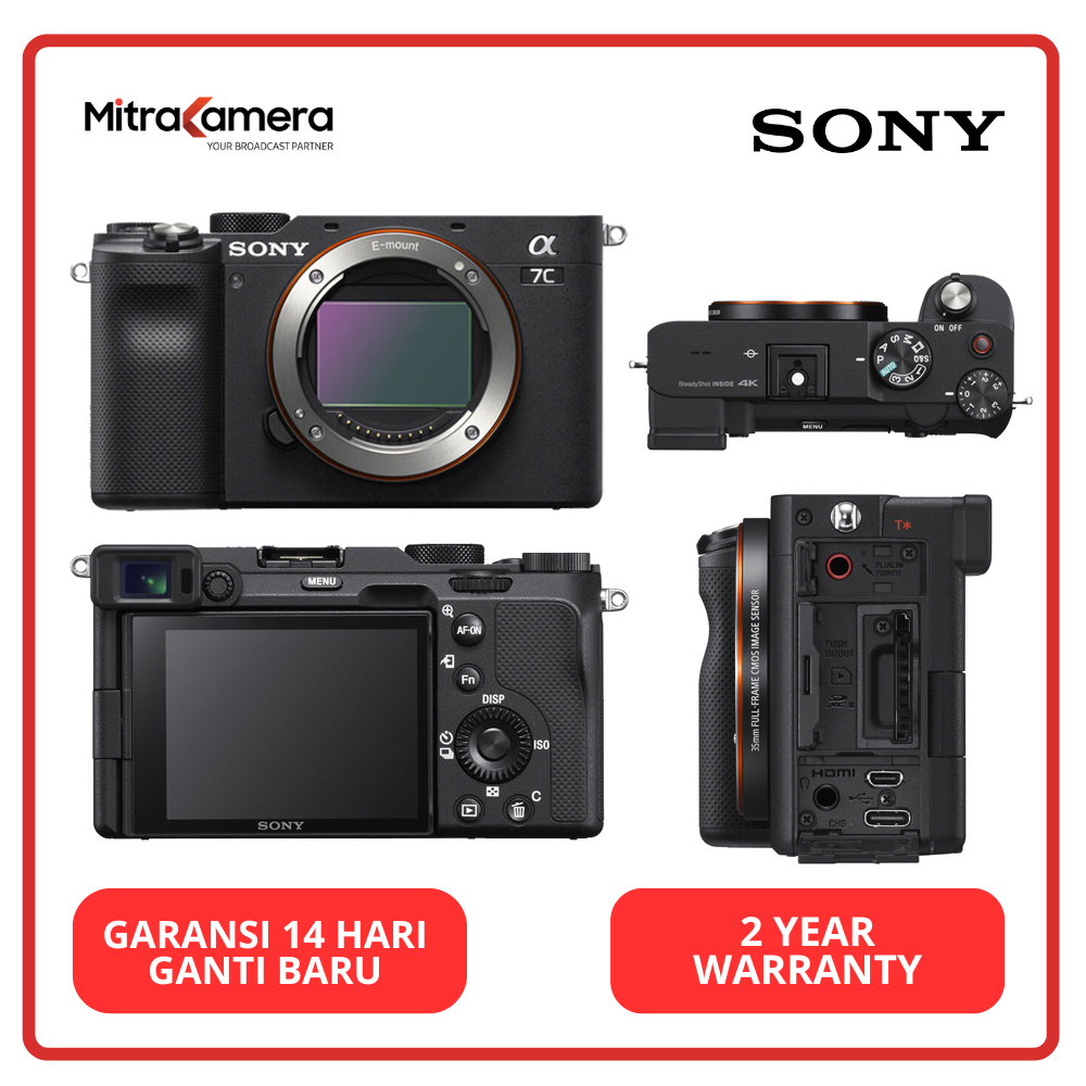 a7C: Compact and CapableMixing the quality and advantages of a full-frame sensor with an especially sleek and portable design, the black Sony a7Coffers the hybrid recording capabilities, 24.2MP Exmor R BSI CMOS sensor, and intelligent AF performance you would expect from an Alpha camera but with a form factor for all-day, everyday carry.